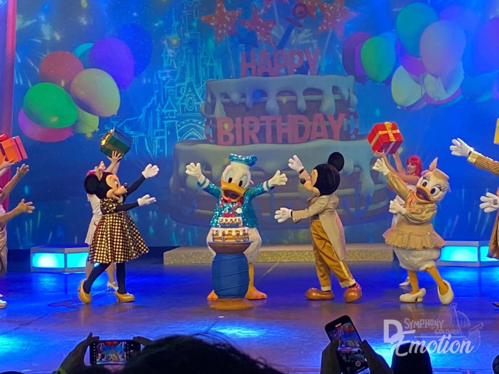 Ainsi été le titre du spectacle proposé sur la scène de Vidéopolis dans Discoveryland. Tous ses amis se sont afférés à lui préparer une surprise afin de célébrer dignement cet honorable anniversaire. Dans un habit étincelant, il était accueilli dans une ambiance disco présenté par Mickey et ses amis. Ils faisaient tous semblant de rien pendant que la surprise du show de Donald se préparait. le spectacle finissait sur une belle chanson « Happy Birthday to you » et un merveilleux gâteau. Une très belle surprise pour l’anniversaire de Donald !