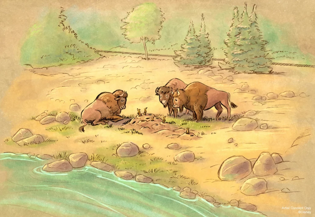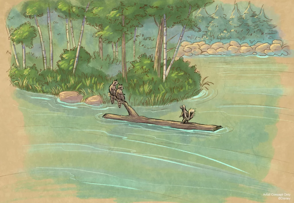 D’ici la fin de l’été 2026, la croisière Rivers of the Far West proposera un parcours enrichi du côté de Thunder Mesa Riverboat Landing. De nouvelles scènes feront leur apparition le long de la rivière. Elles seront directement inspirées de dessins originaux de Marc Davis, Imagineer et Légende Disney.