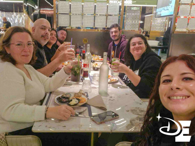 Certains membres de l’équipe et leurs proches au restaurant pour l’anniversaire de D.Emotion