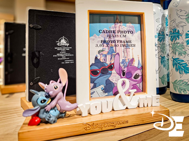 Les différentes boutiques de Disneyland Paris proposent une gamme de produits dédiés à la Saint-Valentin. Petit budget ? Vous pourrez repartir avec un pin’s représentant l’un des couples emblématiques Disney. Plutôt déco ? Un cadre photo est proposé à la vente à Deco by Disney. Stitch et Angel arboreront une superbe photo souvenir de cette journée magique à la maison. Âme d’enfant ? Une petite peluche des irrésistibles Tic et Tac vous touchera en plein cœur.