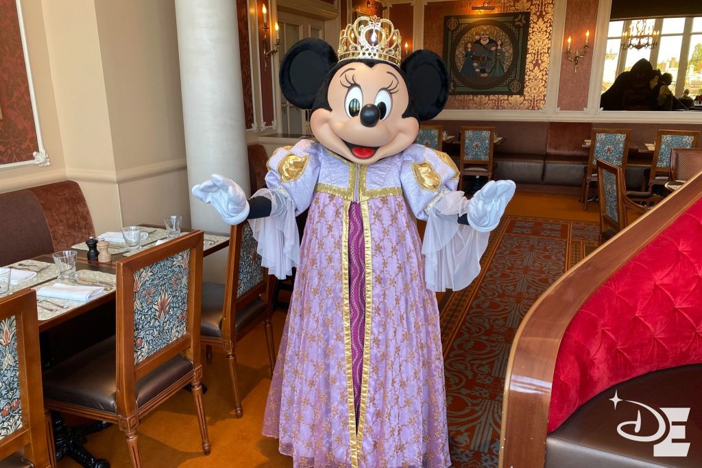 Pour une expérience royale, direction le Royal Banquet au Disneyland Hotel. Dans un décor somptueux, Mickey, Minnie, Donald ou Dingo en tenue princière passent de table en table pour échanger avec les visiteurs. Au sein du même hôtel, La Table de Lumière propose un repas en service à table, où les couples de princesses viennent saluer les convives dans un cadre intimiste et élégant. Les résidents du Castle Club peuvent également profiter d’un petit-déjeuner privilégié au Castle Lounge, en compagnie de princes et princesses, pour un moment magique dès le matin.
