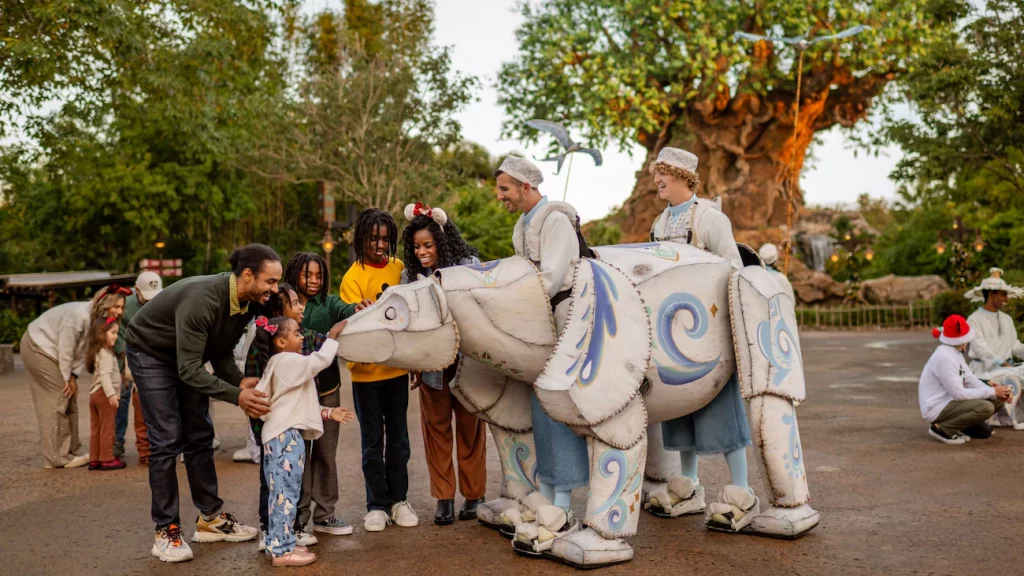 À Disney’s Animal Kingdom, la magie de Noël se mêle à la nature. Merry Menagerie revient à Discovery Island cette année ! Les marionnettes d’animaux polaires et les musiciens créent une ambiance festive.